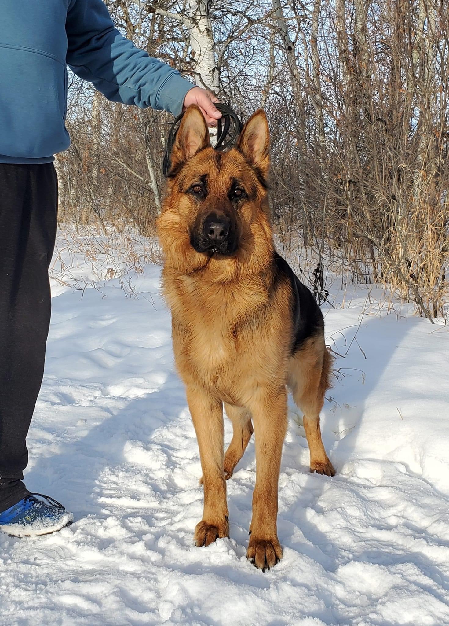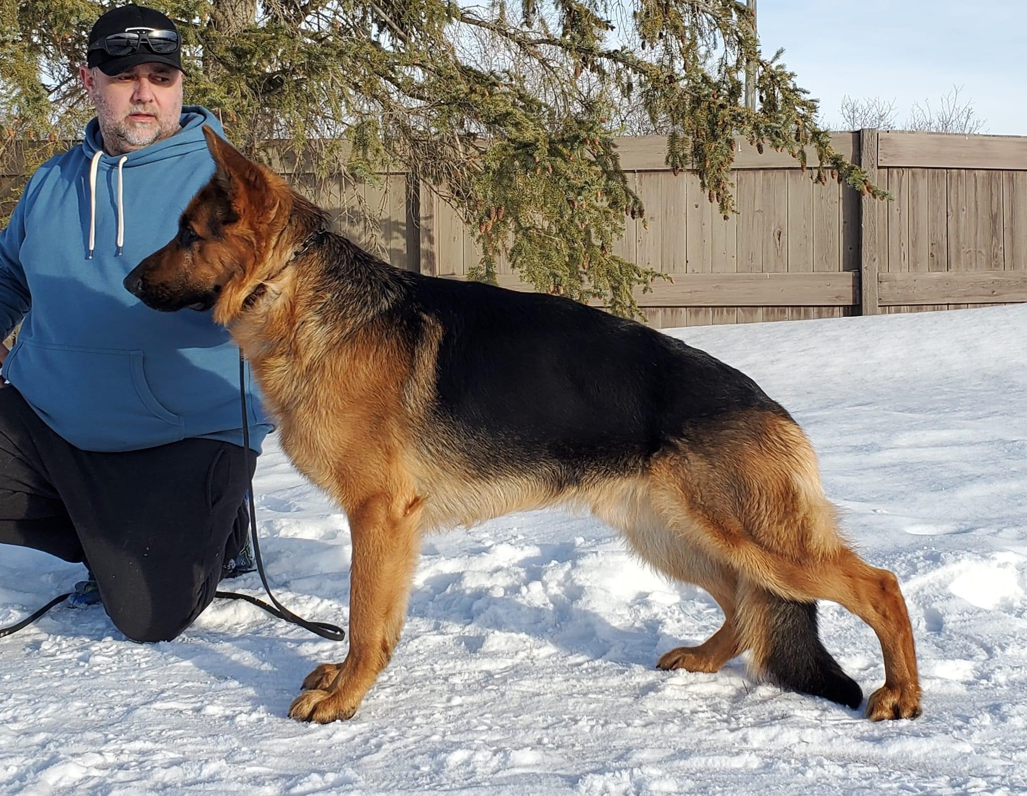 Son of Grand Victor Ejm N' Eko-Lan's Eli, Kenny is an outstanding dog with strong bone and wonderful temperment which is exemplified within his progeny. He is easygoing but loves to be put to work. Kenny has multiple group placements and was awarded Best of Opposite Sex at the 2017 German Shepherd Dog Club of Canada Specialty. NOW RETIRED!